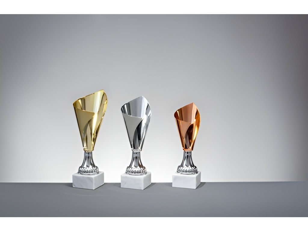 Jednoduše laděná plastová trofej na světlém mramorovém podstavci je skvělým oceněním pro každého vítěze, neboť nabízí varianty v barvách podle stupně vítězů - zlatá, stříbrná a bronzová. Jejím hlavním rysem je minimalistický design, který se vyznačuje hladkým a vysoce lesklým povrchem, čímž dodává na eleganci a prestiži. Plastová trofej je ideální pro jakékoli soutěže, kde chcete ocenit úsilí a úspěchy, a její jednoduchost umožňuje snadné přizpůsobení pro různé události.