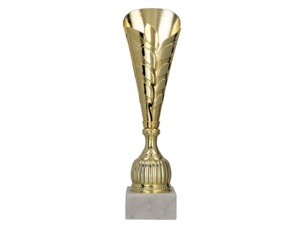Plastová trofej ve zlatém provedení zaujme svým jemně dekorovaným designem s motivem listů, který působí elegantně a přirozeně. Lesklý povrch v kombinaci s plastickými detaily vytváří zajímavý vizuální efekt a dodává trofeji slavnostní vzhled. Tvar směrem vzhůru se rozšiřující horní části symbolizuje růst, úspěch a dosažení cíle, zatímco dekorativní noha s jemným žebrováním dodává celku stabilitu a vizuální vyváženost. Lehká konstrukce umožňuje snadnou manipulaci, zatímco stabilní podstavec zajišťuje pevný základ. Plastová trofej, která spojuje jednoduchou eleganci, symboliku vítězství a dostupné provedení, je tak ideální volbou pro sportovní soutěže, školní akce i větší turnaje.