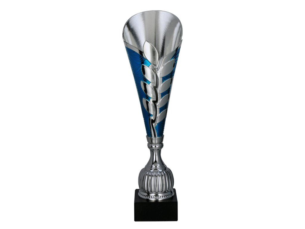 Plastová trofej, která nepůsobí jako klasická trofej. Kombinace chladného stříbra a výrazné modré vytváří dojem hloubky – jako by se v ní odrážela voda, klid i síla zároveň. Dominantní motiv větve nepůsobí jen dekorativně, ale symbolicky. Růst, postup, vytrvalost. Není to jen o vítězství v cíli, ale o celé cestě k němu. Díky tomu má tahle trofej trochu jiný „příběh“ než běžné poháry. Tvar se rozšiřuje směrem vzhůru a působí otevřeně – jako prostor pro další výzvy. Spodní část naopak drží pevný, stabilní základ, takže celek nepůsobí jen lehce, ale i jistě.