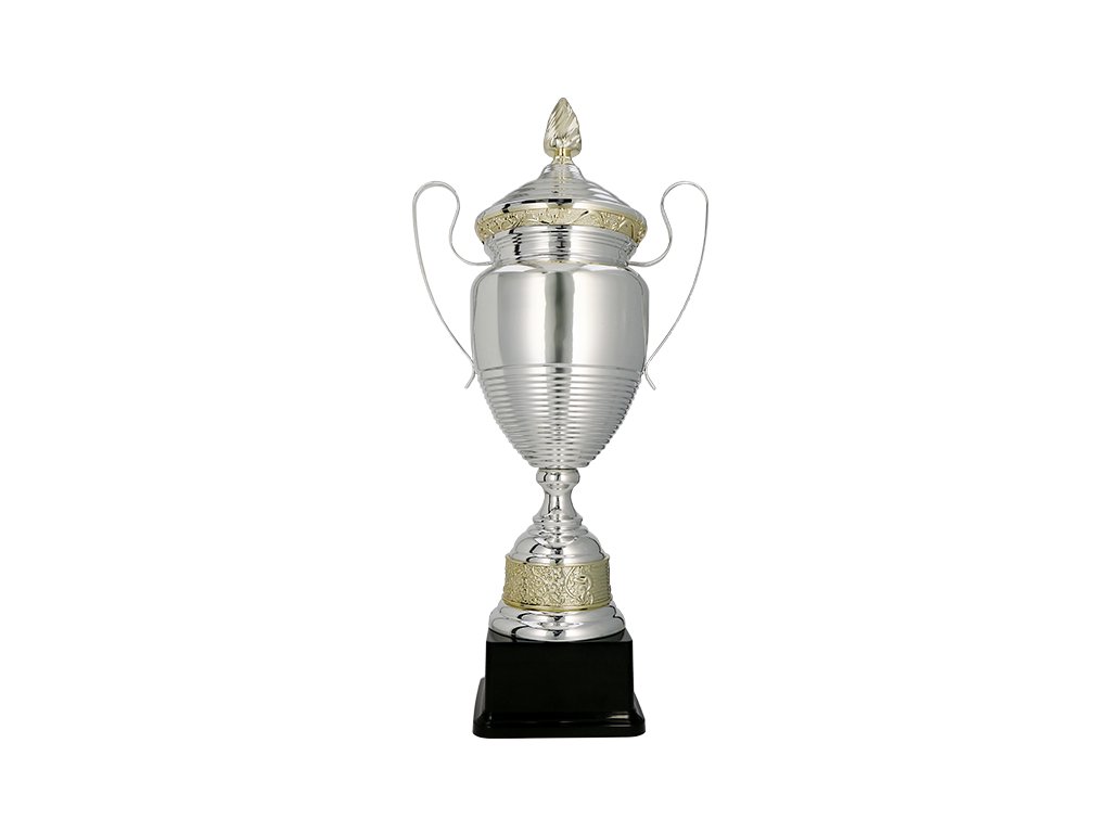 Luxusní kovový pohár, který se pyšní noblesním stylem se smyslem pro každý detail, bude skvělou volbou v okamžiku, kdy hledáte draze vypadající ocenění pro ty nejlepší sportovce. Kovový pohár kombinuje ocelovou stříbrnou s prvky zlaté, nechybí ani jemná textura po jeho obvodu a na poklici. Kovový pohár se vlivem svého designu stane pýchou každého, kdo si jí svým sportovním výkonem vysloužil.
