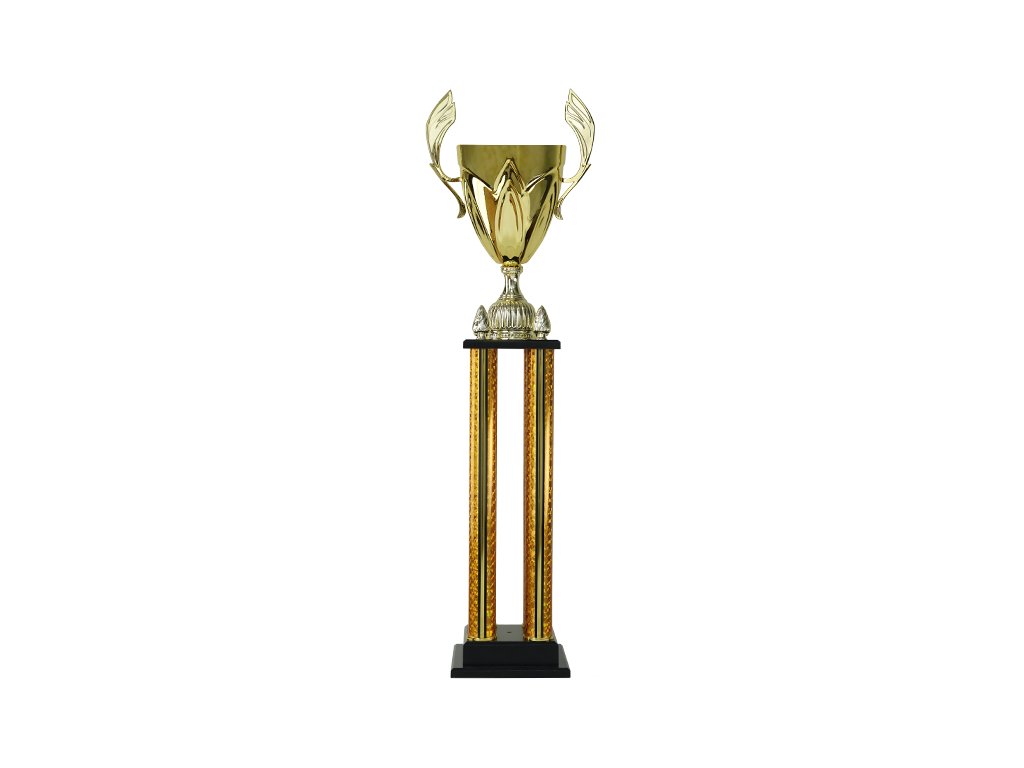 Luxusní kovový pohár v netradičním vzhledu si každého vítěze získá moderním a zcela nadčasovým designem, který bude na každé vitríně doslova pokladem. Kovový pohár kombinuje zlatou barvu, originální texturou i zajímavou aplikaci ve spodní části, díky čemuž stojan kovového poháru vypadá jako obraz z kaleidoskopu. Pro své provedení bude perlou mezi ostatními cenami.