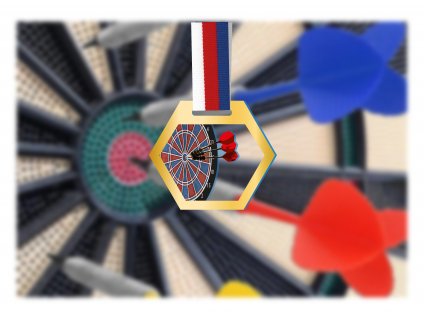 Barevným a do detailu promyšleným designem se může pochlubit akrylátová medaile, jejímž ústředním motivem je terč se třemi šipkami, díky kterému je dokonalou cenou pro vítěze...
