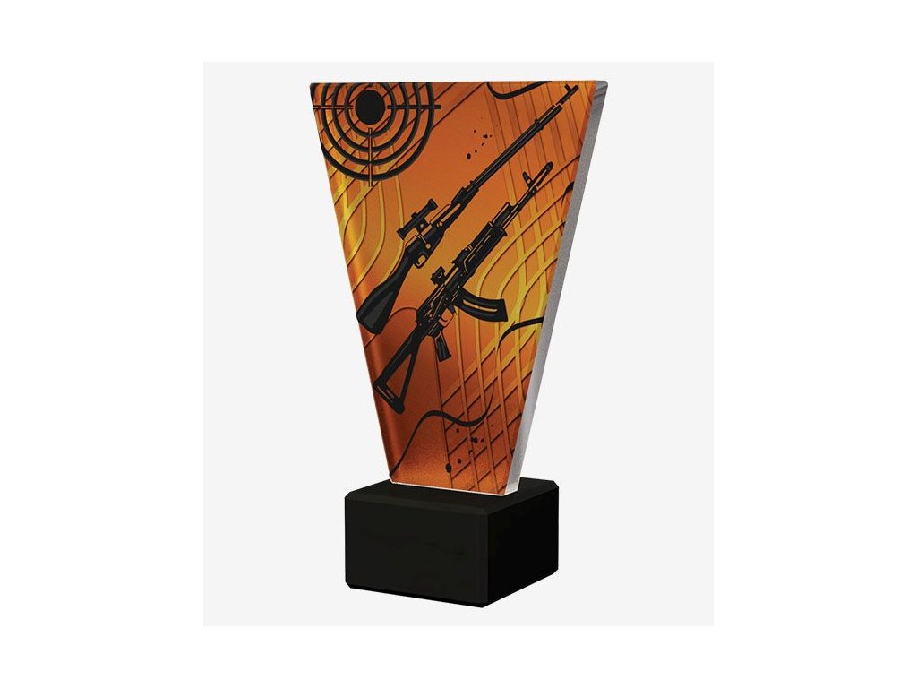 Rádi byste ocenili zdatného střelce, který bravurně ovládá střelbu z dlouhých zbraní? Pak právě o něj máme nachystanou skleněnou trofej na mramorovém podstavci, která se stane krásnou cenou, ať už ji věnujete k jakékoli příležitosti. Skleněná trofej na sobě nese symbolický motiv dvou dlouhých zbraní i terče, které trofeji dodávají na atraktivitě. Skleněná trofej se za všech okolností stane patřičnou ozdobou každé police či vitríny.