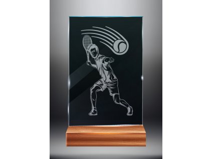 Stylová skleněná trofej s motivem tenisty ve svěžím světle modrém provedení je originálním oceněním pro tenisové mistry, ale i krásným suvenýrem pro fanoušky tohoto sportu.